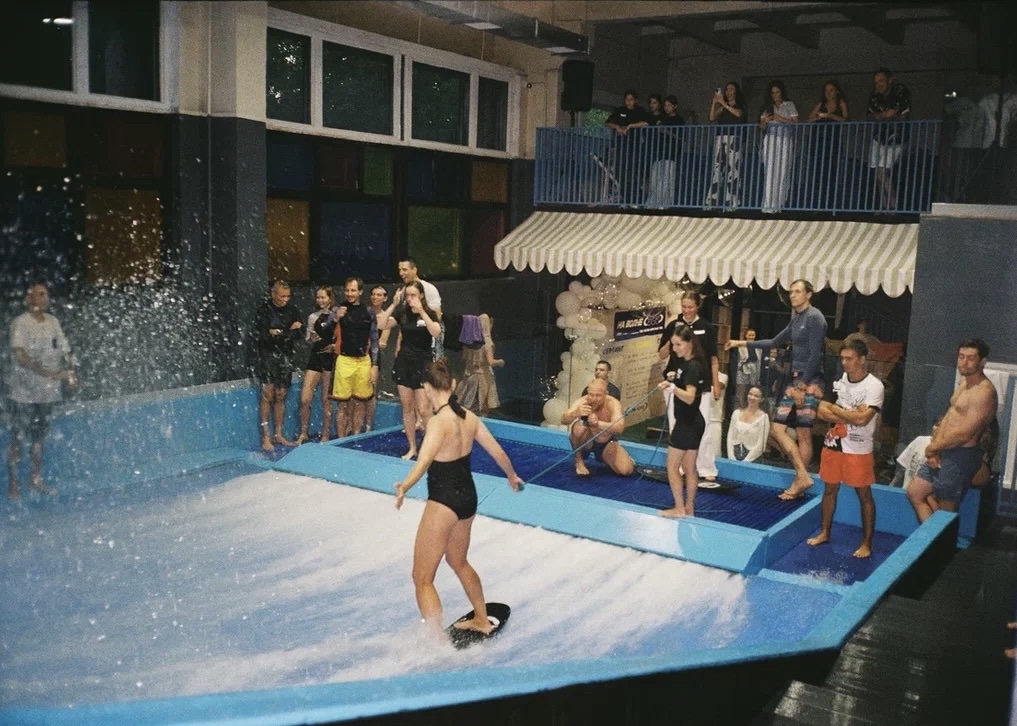 На вечеринку прилетели из Москвы из дружественного клуба Nalu BaloO профессиональные райдеры с мастер-классом, так же было свободное катание на волне для всех желающих в сопровождении инструкторов, кейтеринг, безалкогольный бар, диджейский сет, ведущий, конкурсы и подарки